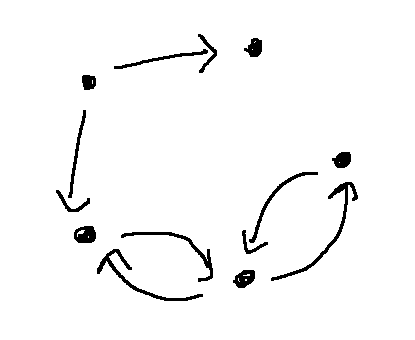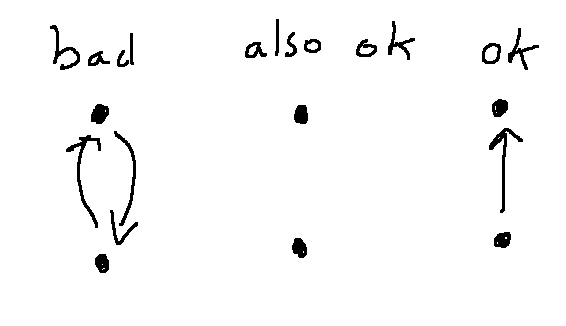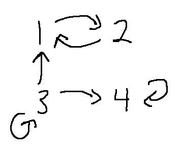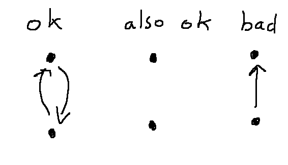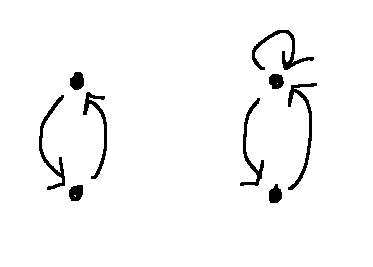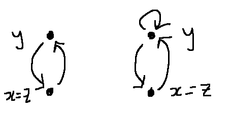 So if we have arrows connecting two nodes in both directions, transitivity requires a self-loop on both nodes.