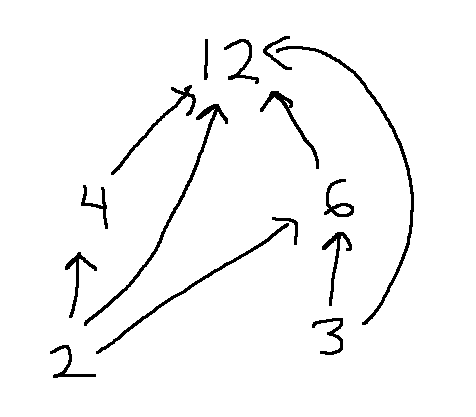 Here is the "divides but not equal" relation on the set B={2,3,4, 6, 12} Notice that the relation has a more uniform structure. For example, none of the elements has a self-loop. There are no pairs of values connected in both directions. The five basic relation properties will help us make that intuition precise, by calling out specific patterns of behavior.