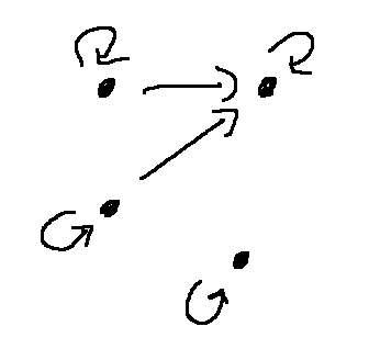A relation is antisymmetric if nodes are connected in only one direction, or perhaps not connected at all. So the local possibilities look like this: