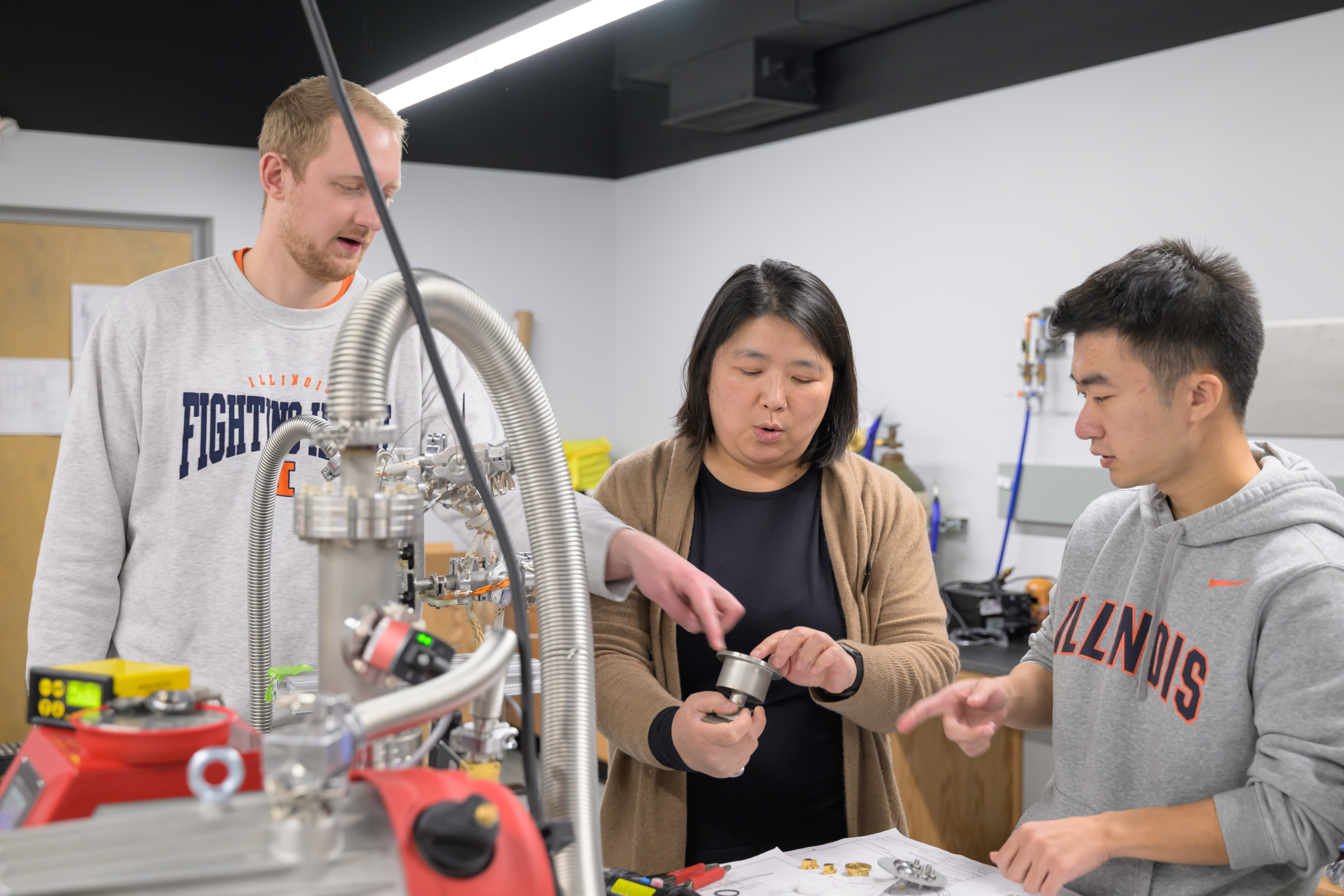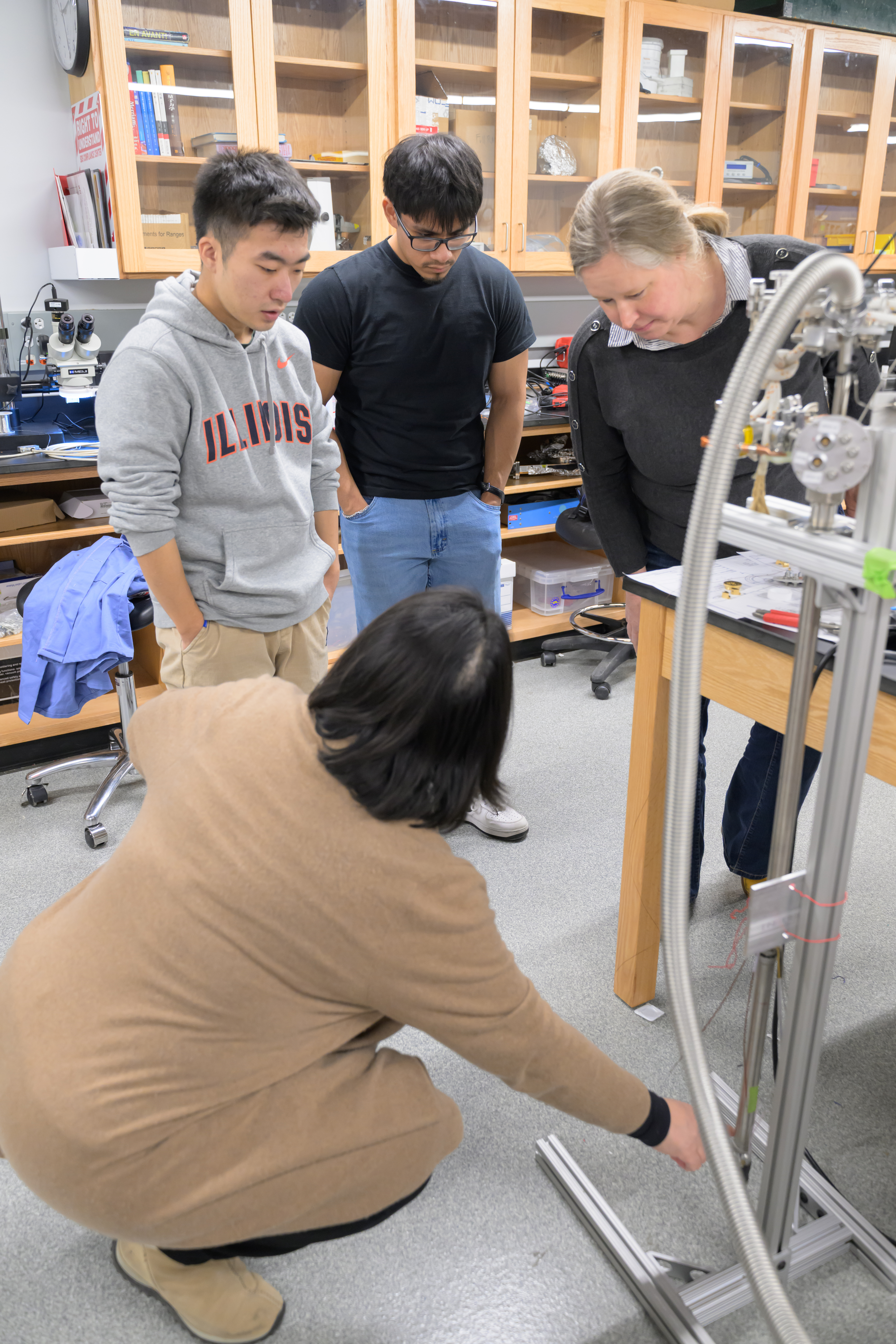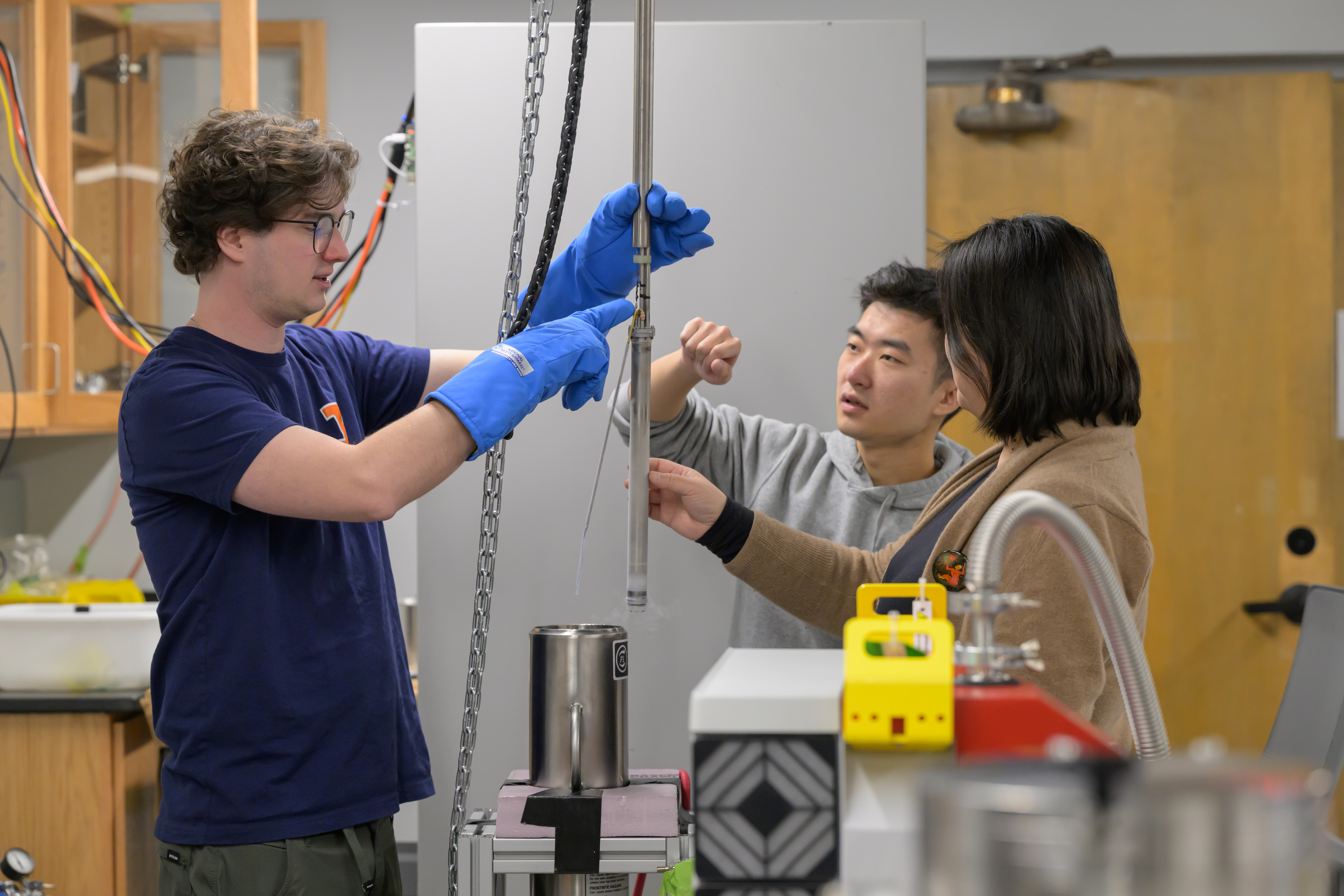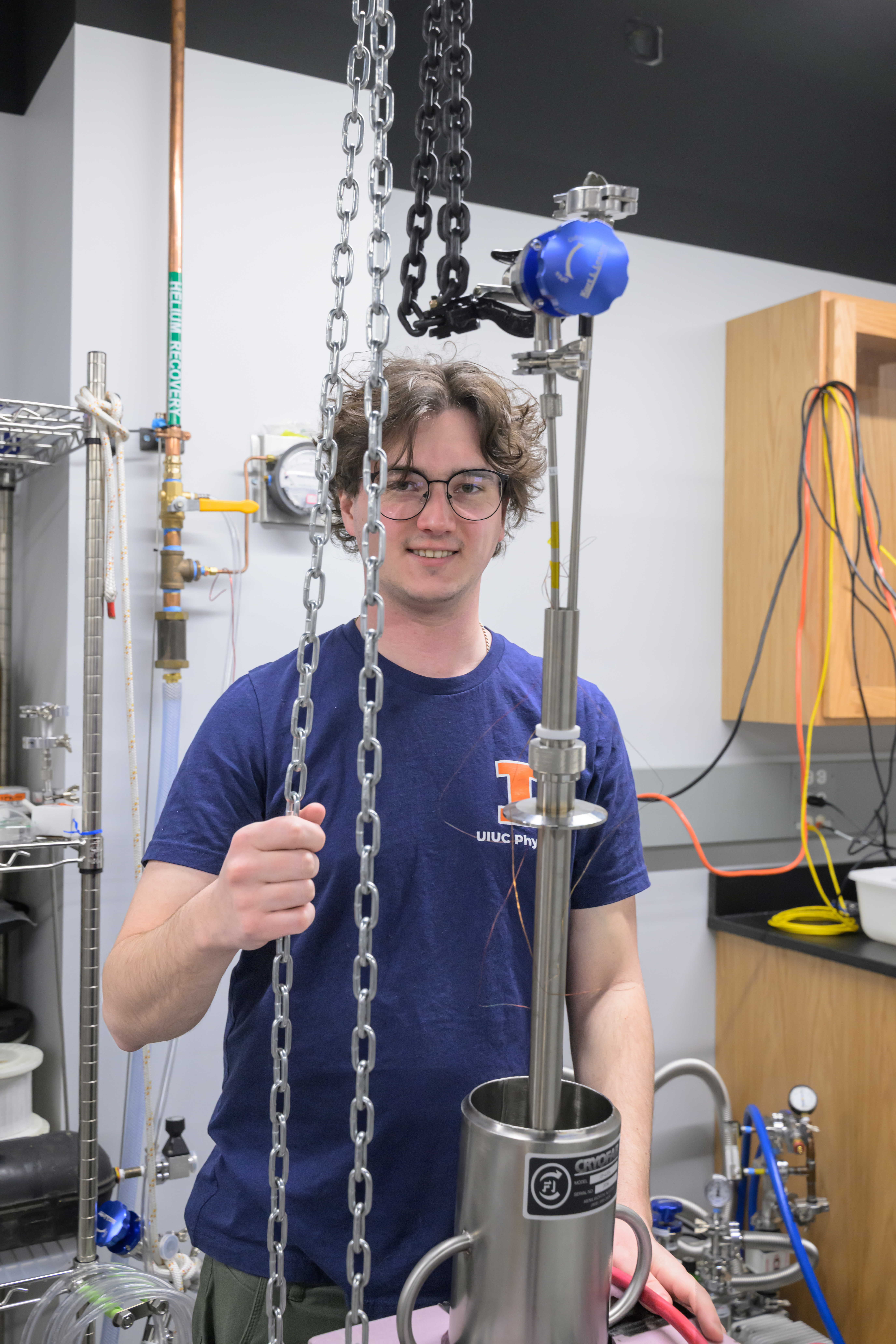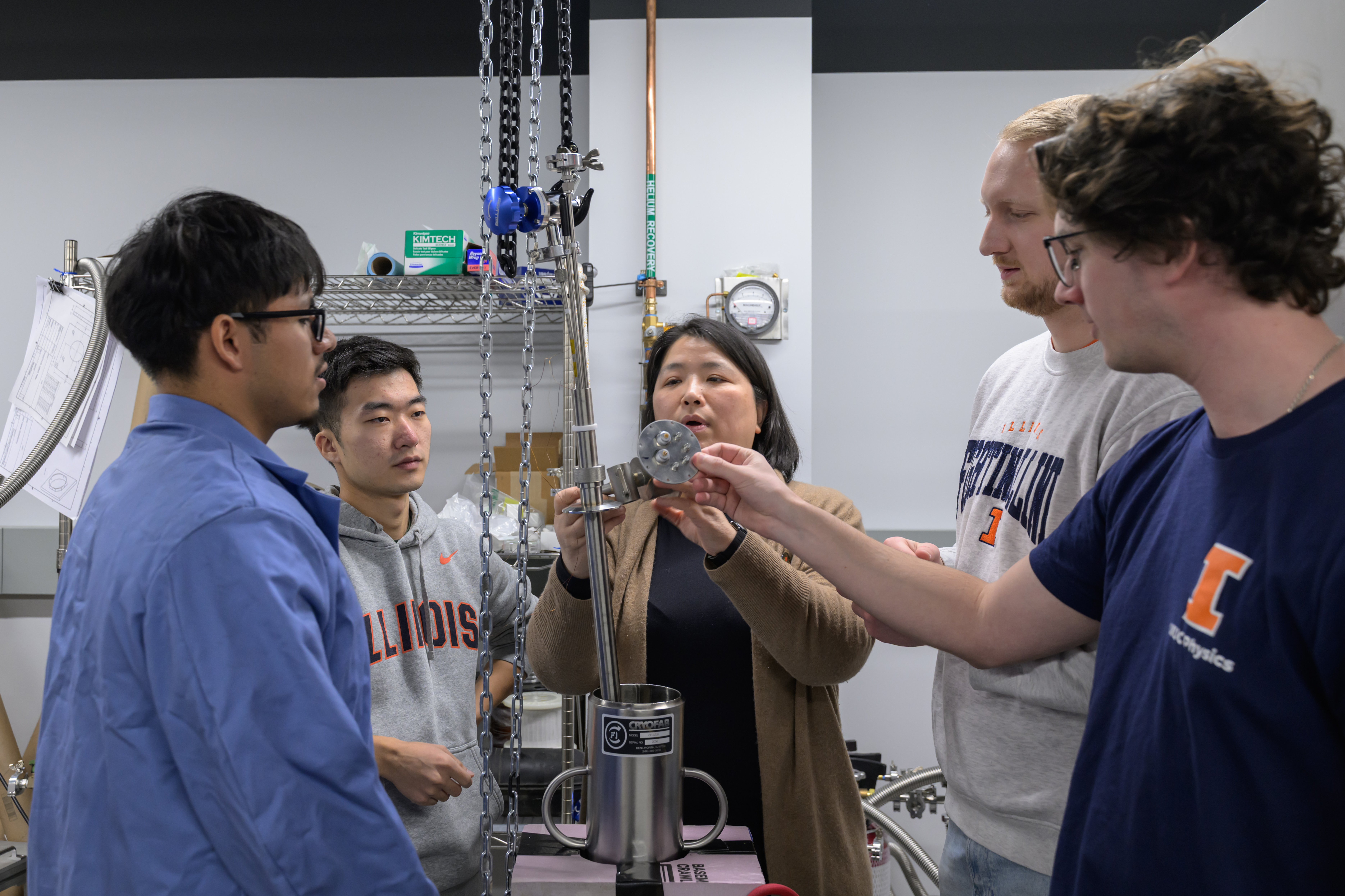 The MEng program at Loomis Laboratory aims to develop a workforce capable of supporting the cryogenic infrastructure needs of quantum industries, offering a multi-tiered training program that bridges physics, engineering, and practical technical skills. The curriculum includes low-temperature physics, thermodynamics, and superconductivity with applied expertise in refrigeration engineering, precision manufacturing, and materials science. The program offers hands-on experience with dilution refrigerators, vacuum systems, and cryogenic electronics, which is complemented by instruction in automation, cryogenic safety, and system integration for large-scale industrial use.