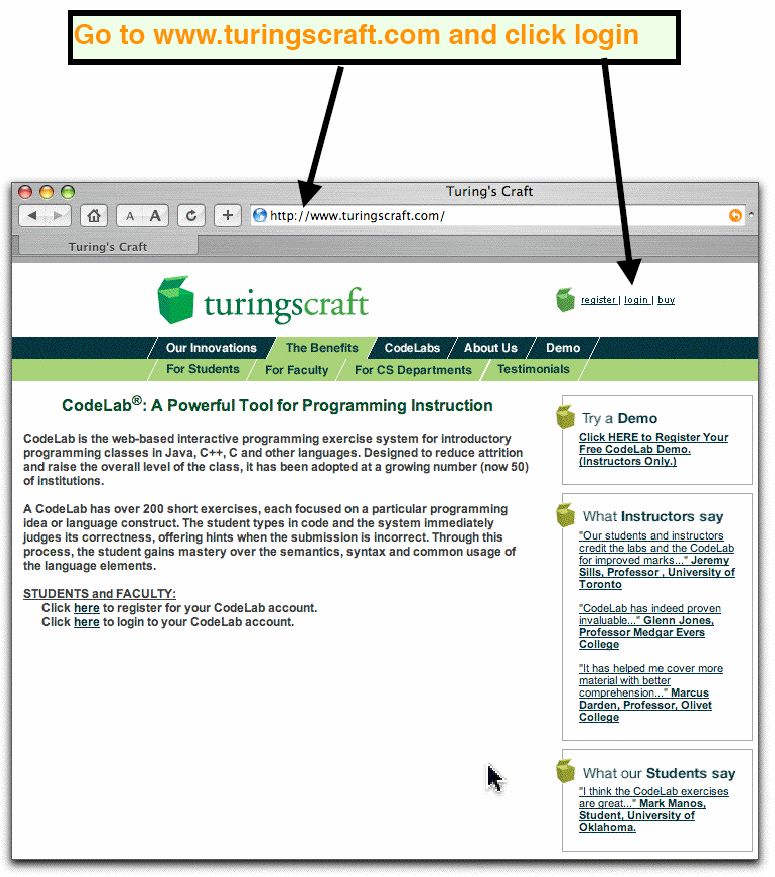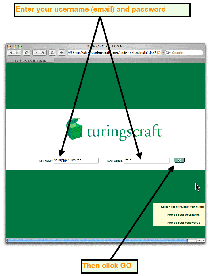 - Go to www.turingscraft.com and click login