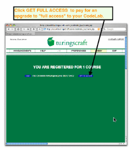 - Click GET FULL ACCESS to pay for an upgrade to "full access" to your CodeLab.