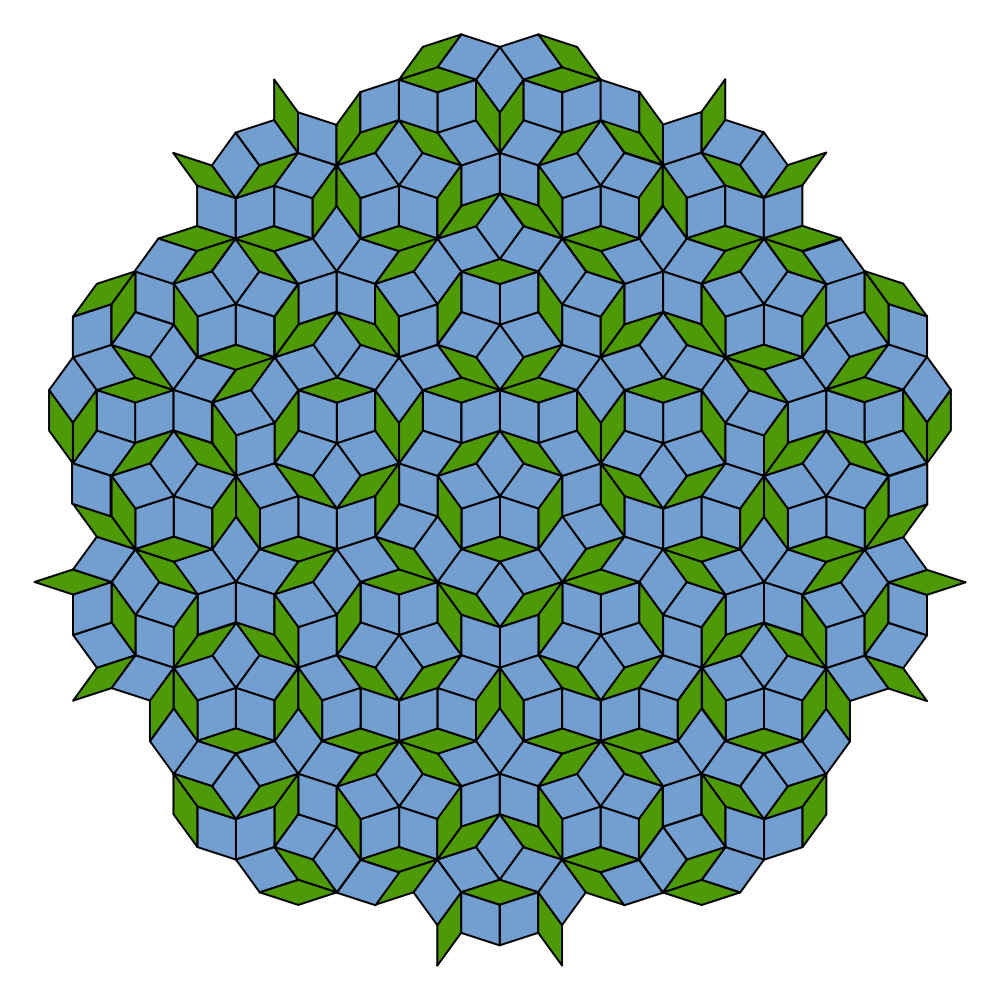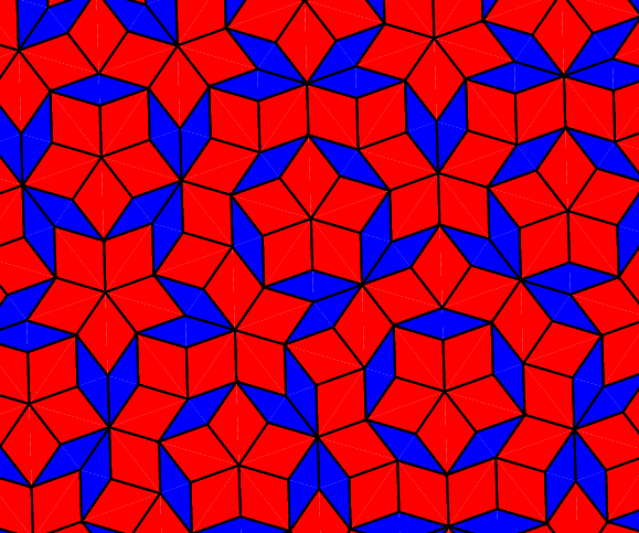 Around 1973-74, Roger Penrose figured out how to make pretty aperiodic tilings using small sets of geometric shapes.