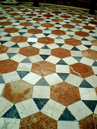If you cut out a rectangle of appropriate size, you can make the whole pattern by making copies of whatever is on the rectangle. This is how modern builders often use cheap materials to simulate the look of fancy ceramic tiles.