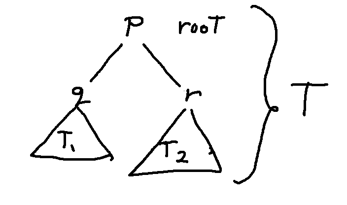 We can divide T into its root and two subtrees (\(T_1\) and \(T_2\)). Suppose that the label on the root is p and the labels on the roots of (\(T_1\) and \(T_2\)) are q and r. By the definition of a llama tree, p = qr.