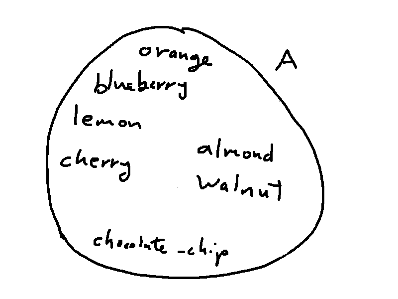 A = {add-ons} = {chocolate-chip, blueberry, orange, almond, lemon, cherry, walnut}
