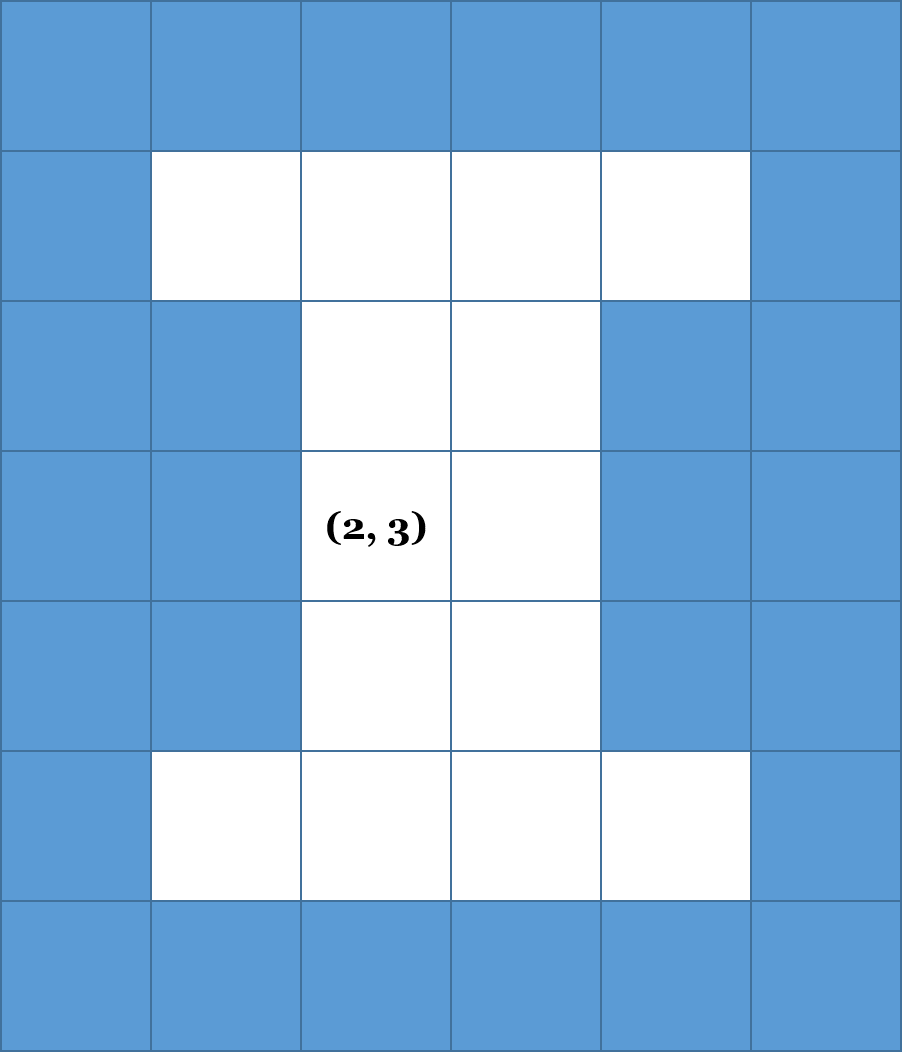 One possible traversal of this image is a Row First Traversal, where every pixel in a single row (within a tolerance) is visited before a pixel in any other row is visited. Starting at (2, 3), such a traversal visits every pixel in Row 2 before moving to Row 3 and visited everying pixel in Ro 3 before moving to Row 4: