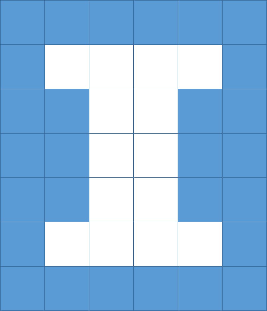 For example, consider a “Block I” image that is exactly 6 pixels wide and 7 pixels tall: