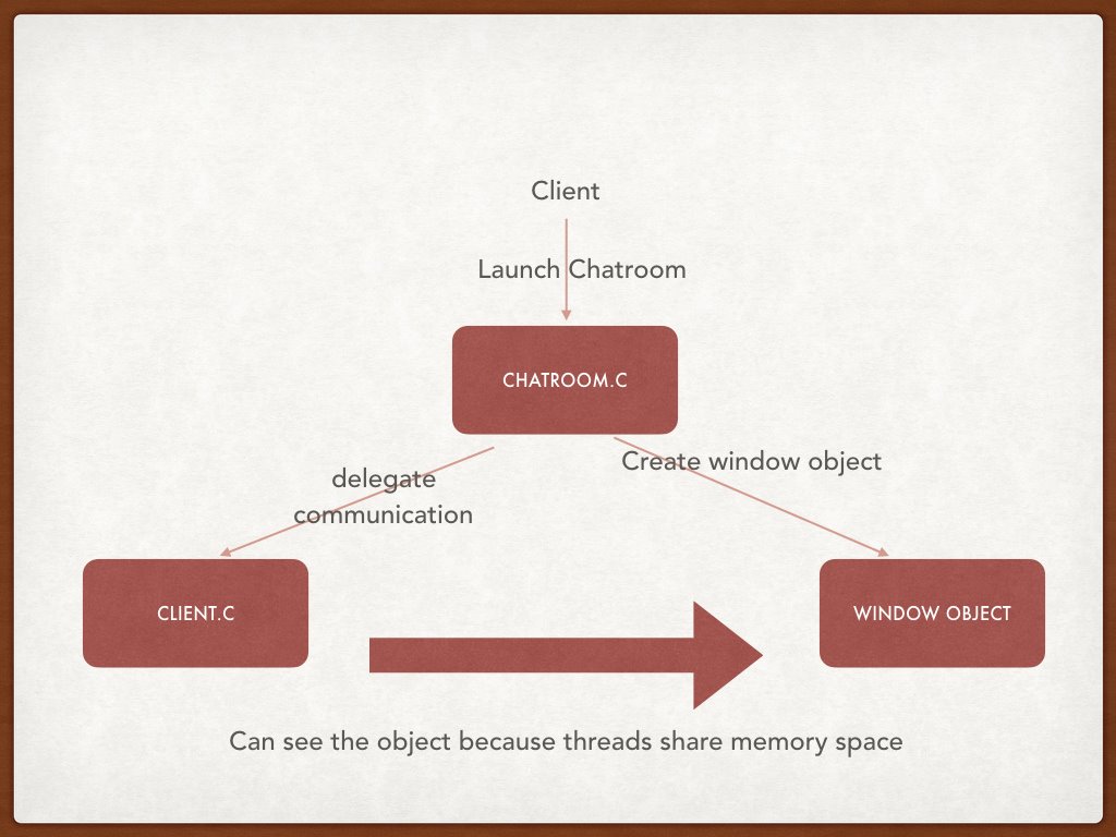 The file chat_window.c is the control center for setting up the ncurses windows (that’s a thing). You do not need to worry about this, but feel free to look at it if you are interested.