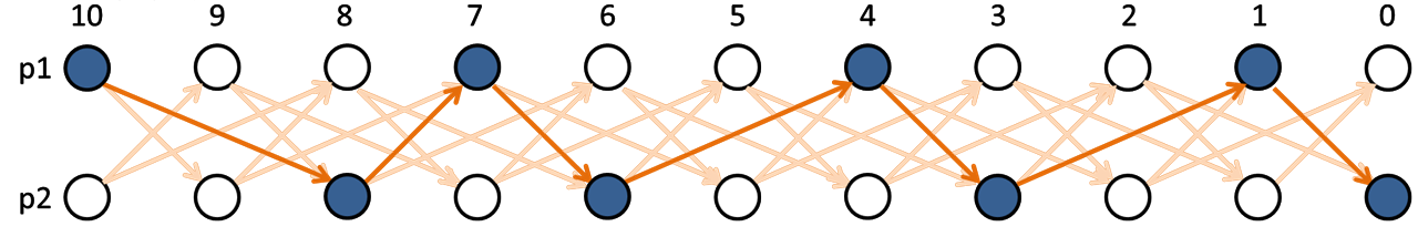 p1-10 ➜ p2-8 ➜ p1-7 ➜ p2-6 ➜ p1-4 ➜ p2-3 ➜ p1-1 ➜ p2-0