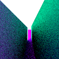 Numbers generated for pixel (55, 45)Ray origin: (0, 0, 0)Ray direction: (0.0990148, -0.0990148, -0.990148) Intersection depth: 0.724832 Intersection point: (0.0717691, -0.0717691, -0.717691) Surface normal: (0.23923, -0.23923, 0.94103) Sun direction: (0.57735, 0.57735, 0.57735) Lambert dot product: 0.543304 Linear color: (0.543304, 0.543304, 0.543304) sRGB color: (194, 194, 194) Numbers generated for pixel (82, 70)Ray origin: (0, 0, 0)Ray direction: (0.481108, -0.451039, -0.751731) Intersection depth: 1.20665 Intersection point: (0.58053, -0.544246, -0.907077) Surface normal: (-0.838941, 0.511507, 0.185845) Sun direction: (0.57735, 0.57735, 0.57735) Lambert dot product: -0.0817462 Linear color: (0, 0, 0) sRGB color: (0, 0, 0) |