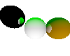 the first sphere is white, the second and third spheres are red and the last color
