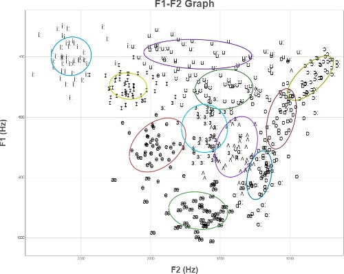 Here's a schematic representation of English vowels (from Wikipedia). From this, you might reasonable expect to experimental data to look like several tight clusters of points, well-separated. If that were true, then classification would be easy: model each cluster with a regeion of simple shape (e.g. ellipse), compare a new sample to these region, and pick the one that contains it.