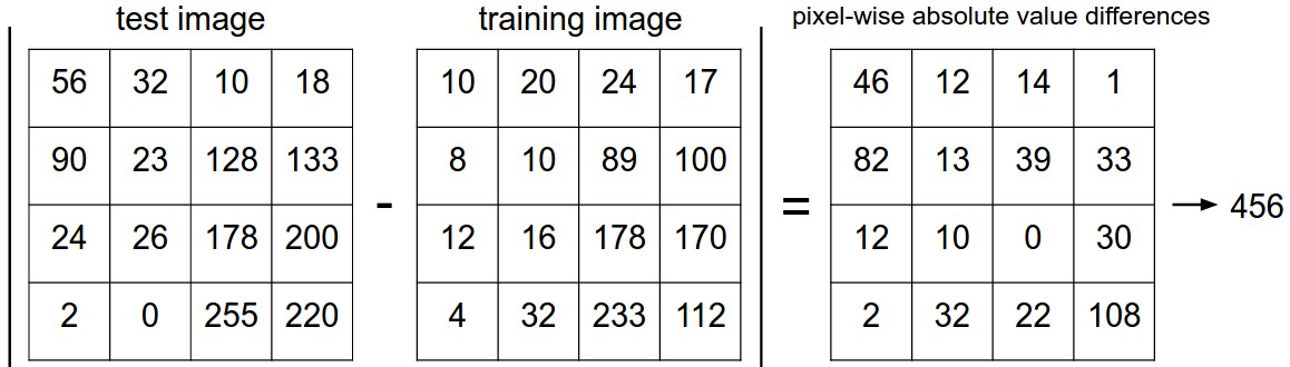 More precisely, there are two different simple ways to calculate the distance between two feature vectors (e.g. pixel values for two images) x and y.