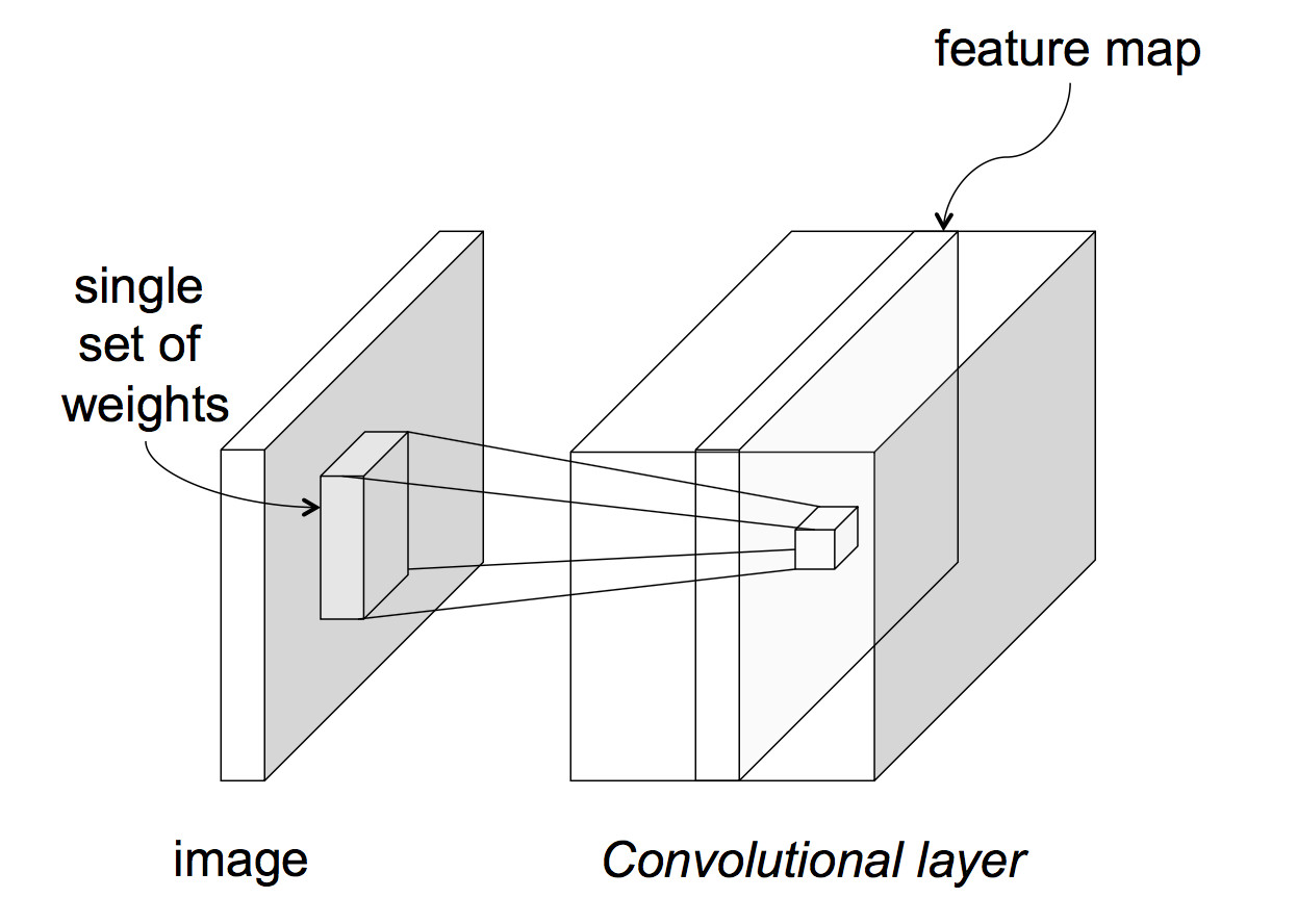 In a CNN, each unit reads input only from a local region of the preceding layer: