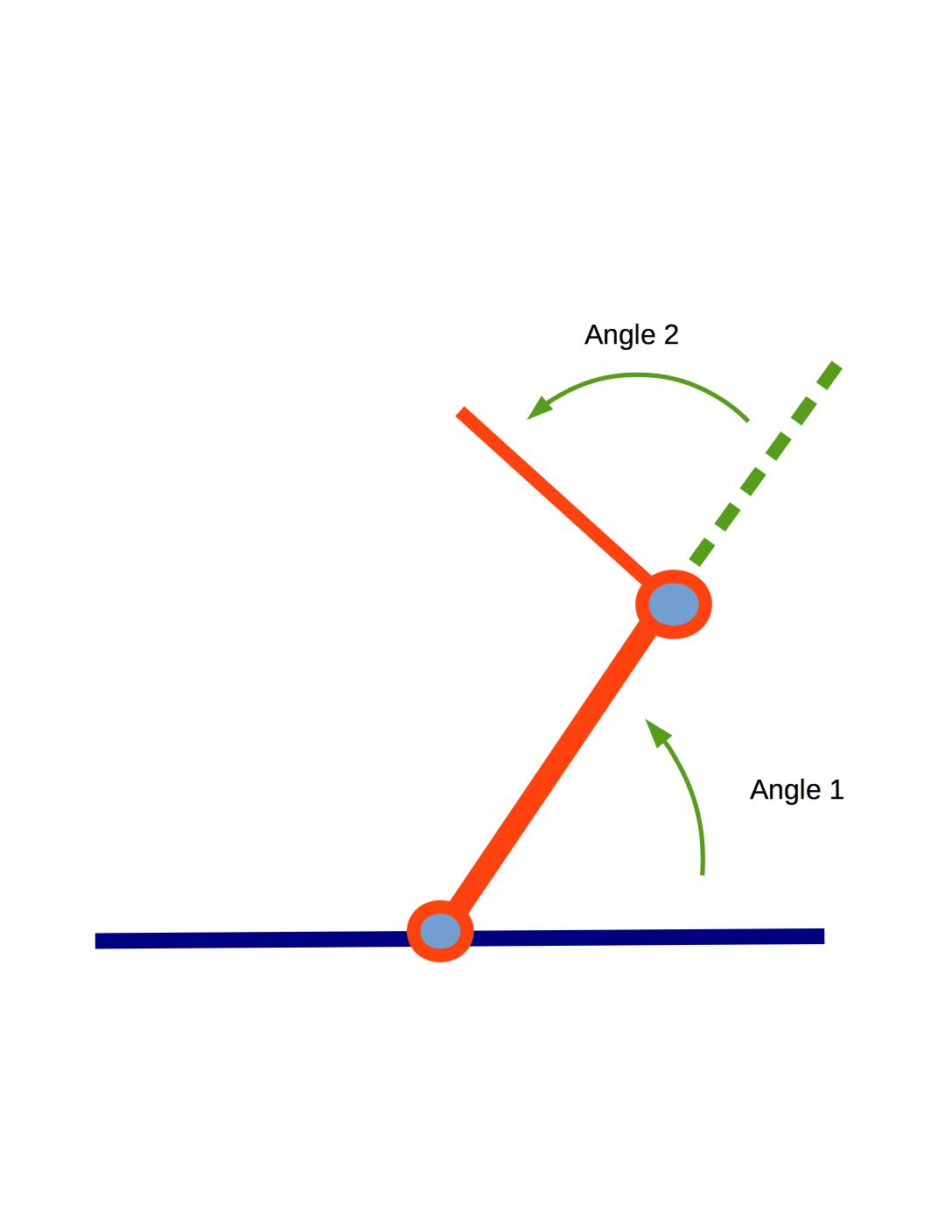 - (min angle, max angle): The minimum and maximum angle for this arm link is 0 and 180.