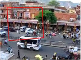 This is a video from 10 years ago in Jaipur, Northern India. We use the first 30 seconds that has 900 frames. Both the video and the decomposed jpg frames are included in the starter kit. We use frame number 450 as the reference frame. That means we map all other frames onto the "plane" of this frame using a homography transformation. This involves: (1) compute homography H between two frames; (2) project each frame onto the same surface; (3) blend the surfaces.