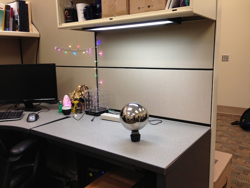 To the right are three pictures taken with different exposure times (1/24s, 1/60s, 1/120s) of a spherical mirror in an office. The rightmost image shows the HDR result (tonemapped for display). In this part of the project, you'll be creating your own HDR images. First, you need to collect the data.