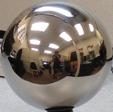 Photograph the spherical mirror using at least three different exposures. Make sure the camera does not move too much (slight variations are OK, but the viewpoint should generally be fixed). For best results, your exposures should be at least 4 times longer and 4 times shorter (±2 stops) than your mid-level exposure (e.g. if your mid-level exposure is 1/40s, then you should have at least exposures of 1/10s and 1/160s; the greater the range the better). Make sure to record the exposure times.