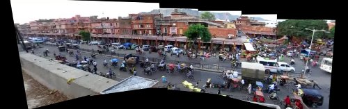In part 2, you performed image tiling. In order to generate a good looking panorama you need to select a seam line to cut through for each pair of individual images. Because the objects move the cut must be smart enough to avoid cutting through objects. You can also use Laplacian blending. You are free to use the code from your previous projects.