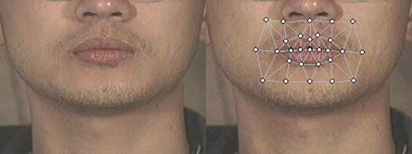 Figure 2: Mouth image (left); Mouth image with triangular mesh (right)