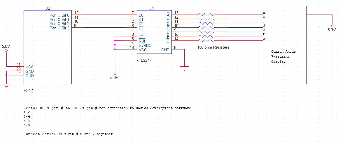Example ProgramsHere's the code for a little demo we made. It involves a small schematic, and whether you build it or not, you'll get the idea of how to do digital Pin IO and multitasking. The program counts from 0 to 9 (and repeats) one number per second and displays the count on an LED display. At the same time, another task runs that flashes the LEDs on the BX24 the number of times shown on the display and waits until the display changes. Schematic is also included. Create a project and add this file to the project. Hit 'Compile and Run' from the Compile menu and go ooh...ahh a couple of times. Demo.bas -- The Source File Demo.jpg -- The Schematic This document created by: CJ Oster and Joe Ngai Last Modified: April 09, 2003 |