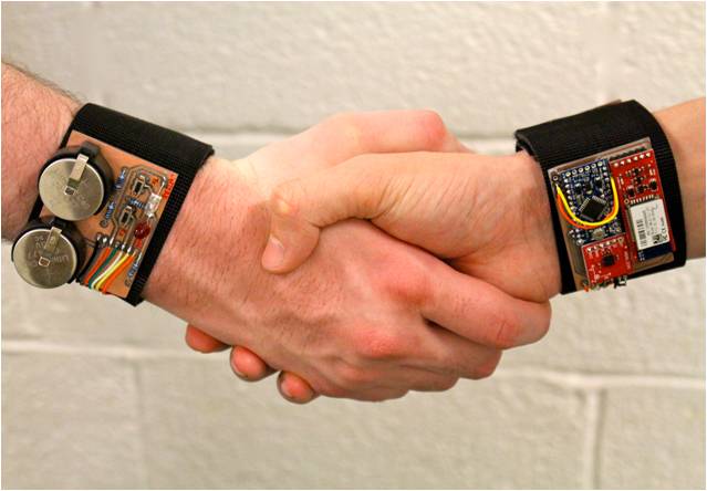 | For our project we are going to make a device that users can wear at a business meeting, etc. that will automatically exchange contact information when a handshake between to users is detected. Upon this handshake the exchange of info will happen wirelessly through a bluetooth transceiver. We plan to use a microcontroller as a host to control communications between the two devices and an IMU to detect the handshake between two parties. We hope to be able to add the ability to transfer a picture along with the contact information. |
