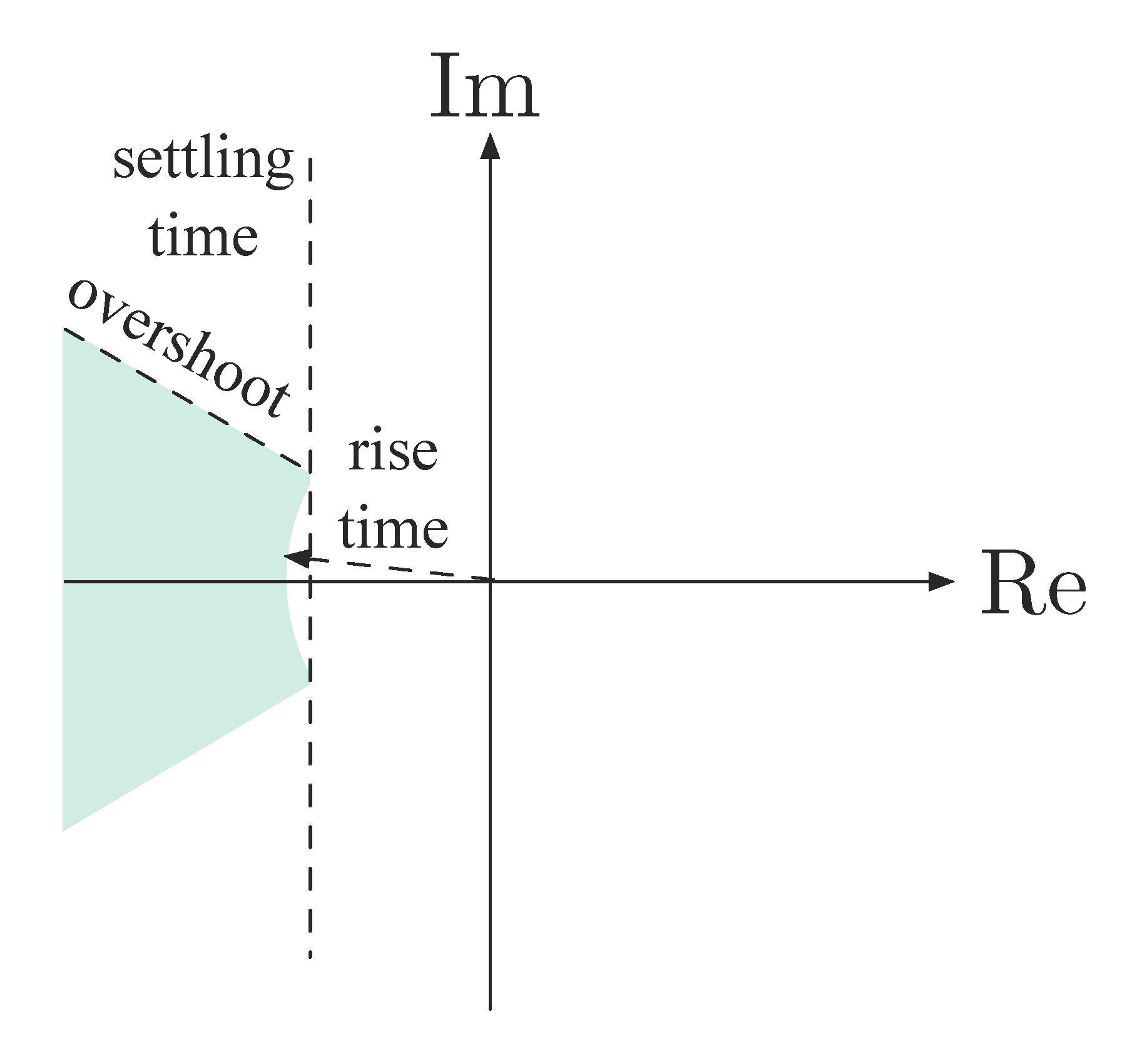 Figure 2: Admissible pole locations with constrained time domain specifications
