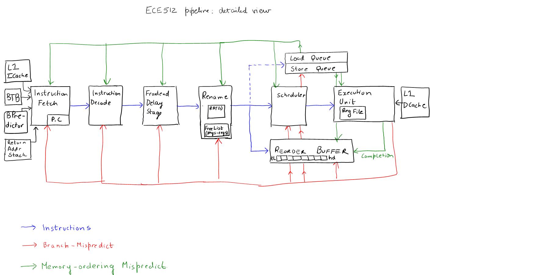 NOTE: the ECE511 simulator doesnt have branch prediction (the Bpredictor box above) and renaming (RATs and FL blocks)
