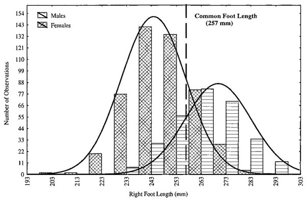 If provided with a particular shoe size as a classification task, the plot above shows easily how one could estimate P(Y|X). If an application requires it, a generative model could also generate fake data that looks real by sampling from each individual likelihood distribution P(X|Y). As long as the underlying distribution chosen for the modeling the data is correct (two independent Gaussians in this case), the sampled data is indistinguishable from the true data.