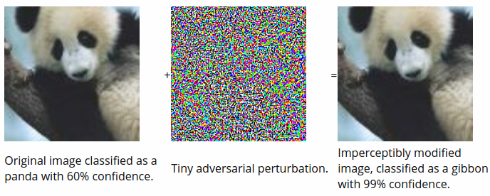 Similar to the feature visualization technique, real images correctly classified by a network can be imperceptibly altered to produce a highly confident incorrect output. Backpropagate the error for an alternative label to real image, use the sign of the gradient (-1 or 1), multiply this by 0.0078, and add it to the original image. A value of 0.0078 is 1⁄255 which is how colors are discretized for storing a digital image. Changing the value of the input image by less than this is imperceptible to humans but convolution networks can be highly sensitive to these changes.