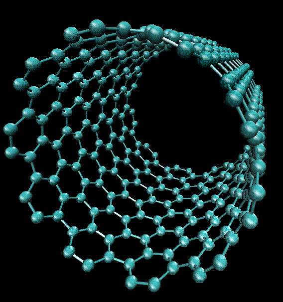 (visualization of a [10,10] single wall carbon nanotube, rendered by VMD)